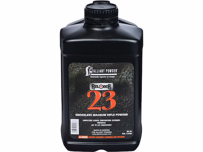 To achieve outstanding accuracy in the widest range of conditions, shooters need propellant that performs consistently across temperature extremes. Like its sister product, AR-Comp, new Reloder 23 from Alliant Powder does exactly that. Its sophisticated TZ technology manipulates the response of the material and resists the natural tendency to generate more pressure at higher temperatures and less pressure at lower temperatures. Reloder 23 is perfect for long-range target shooters seeking performance similar to Reloder 22 with world-class temperature stability.